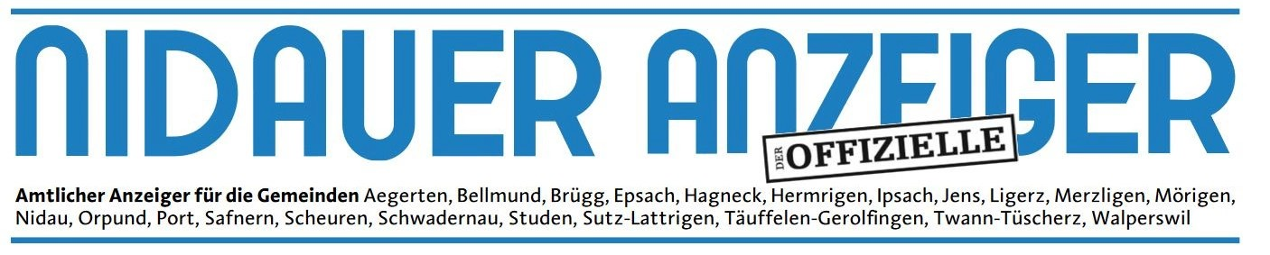 Der Nidauer Anzeiger ist das amtliche Publikationsorgan der Gemeinde Studen. Was im Anzeiger steht, gilt als "öffentlich bekannt". Es gibt ihn in digitaler Form unter amtliches.ch oder in Papierform. Bitte beachten Sie jeweils die Publikationen unter der Rubrik "Studen". Die Papierausgabe erscheint jeden Donnerstag. Zum Nidauer Anzeiger.