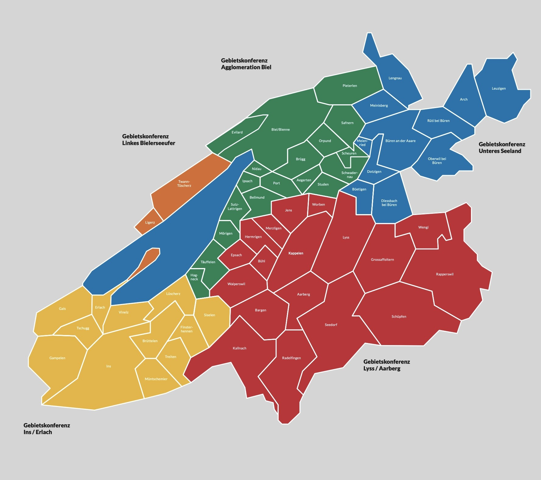 Der Verein seeland.biel/bienne ist ein Zusammenschluss von 61 Gemeinden im Berner Seeland. Er nimmt regionale Aufgaben war, z.B. in den Bereichen Raumplanung, Verkehr, Neue Regionalpolitik (NRP), etc.